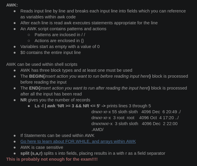 intro to unix class on the Unix awk: