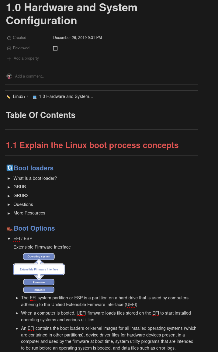 Next up I moved to the venerable Notion.so. This was the first application where I was able to get a decent “note structure” going. I was quite happy with this system for learning simple things such as terms that appeared in the Linux+ Certification objectives.