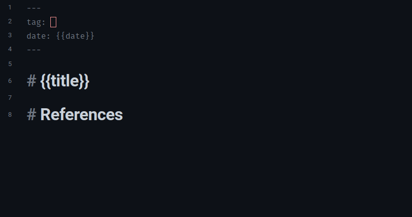generic template I use for my notes. This defines frontmatter (meta data