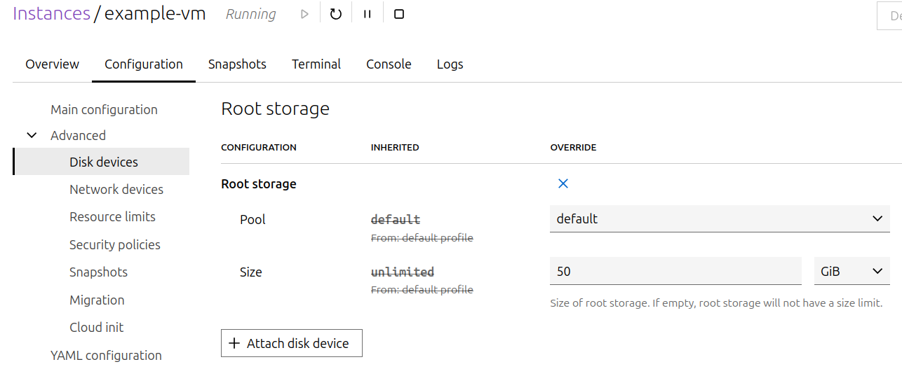 1. Depending on the size of the OVA, you may want to retroactively add more storage to the VM. Within the Incus WebUI, additional disk storage space can be allocated if needed.