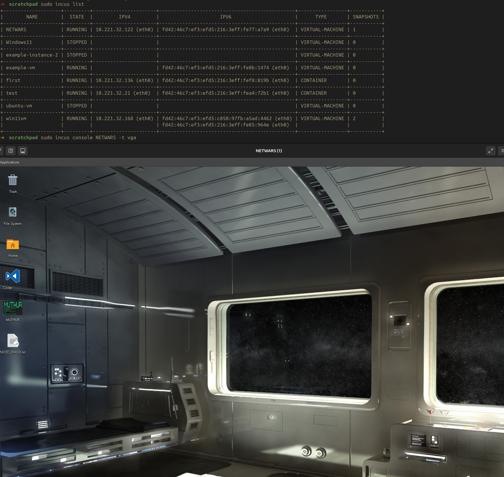 A connection to the VM console can be made by running sudo incus console <image_name> -t vga. You may need to install some dependencies first: